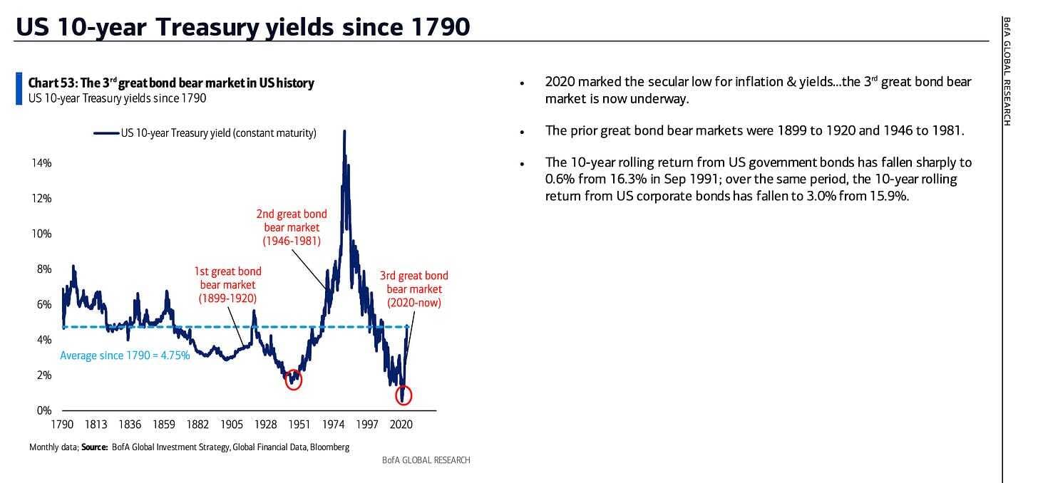 2022: Russia-Ukraine War; Fed starts most aggressive rate hiking cycle in 40 years; worst loss (17%) in 10-year Treasury since 1788; S&P 500 crashes from 4.8k to 3.5k