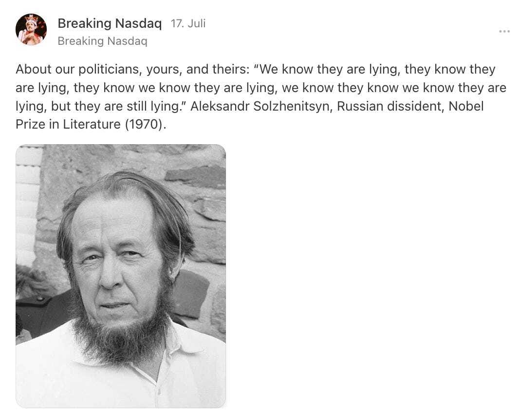 Never trust anyone – not your spouse, friends, neighbours, colleagues, bosses, politicians, religious leaders, gods, news outlets, or even the weatherman or stock market forecasts. And certainly not yourself. Always verify information across multiple languages, sources, perspectives, timeframes, and under different political and economic regimes. Remember – in the world of money, you are your only true ally, and “there are no facts, only interpretations” (Friedrich Nietzsche). Always ask: Who stands to profit from the advice, analysis, or opinion you’ve just been given?