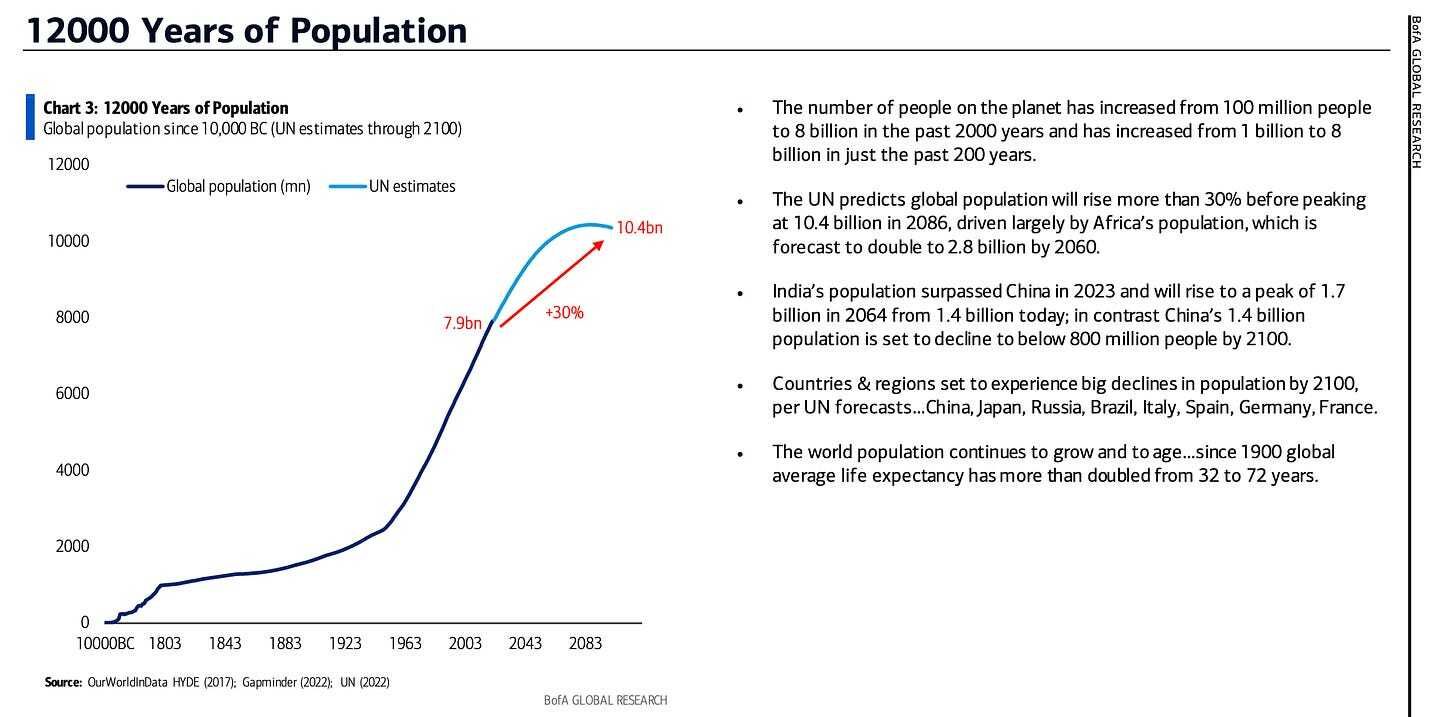 2023: India surpasses China population; 2nd US debt downgrade; US Treasury losses for 3rd consecutive year; ChatGPT ignites AI “baby bubble”.