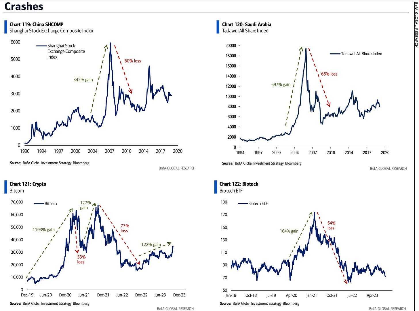 Fast moves don’t end gently Parabolic rises collapse hard. For eg: Bitcoin rose 7x in a year, then dropped 75%.