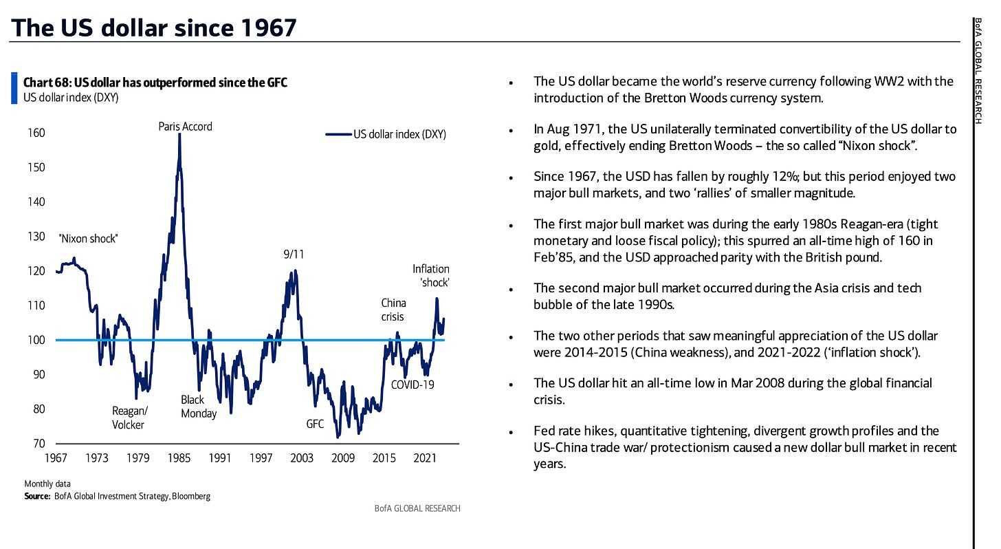 1971: “Nixon shock” as US ends convertibility of US dollar to gold, ending Bretton Woods; US dollar becomes a fiat currency