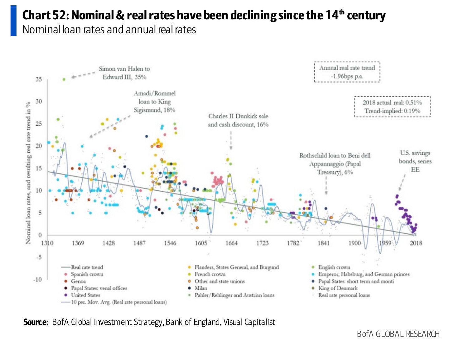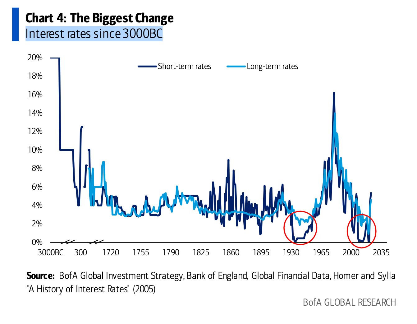 5000 years: on Mar 9th 2020 the US 10-year Treasury yield fell to an intraday low of 0.3%, taking global interest rates to their lowest level in 5000 years