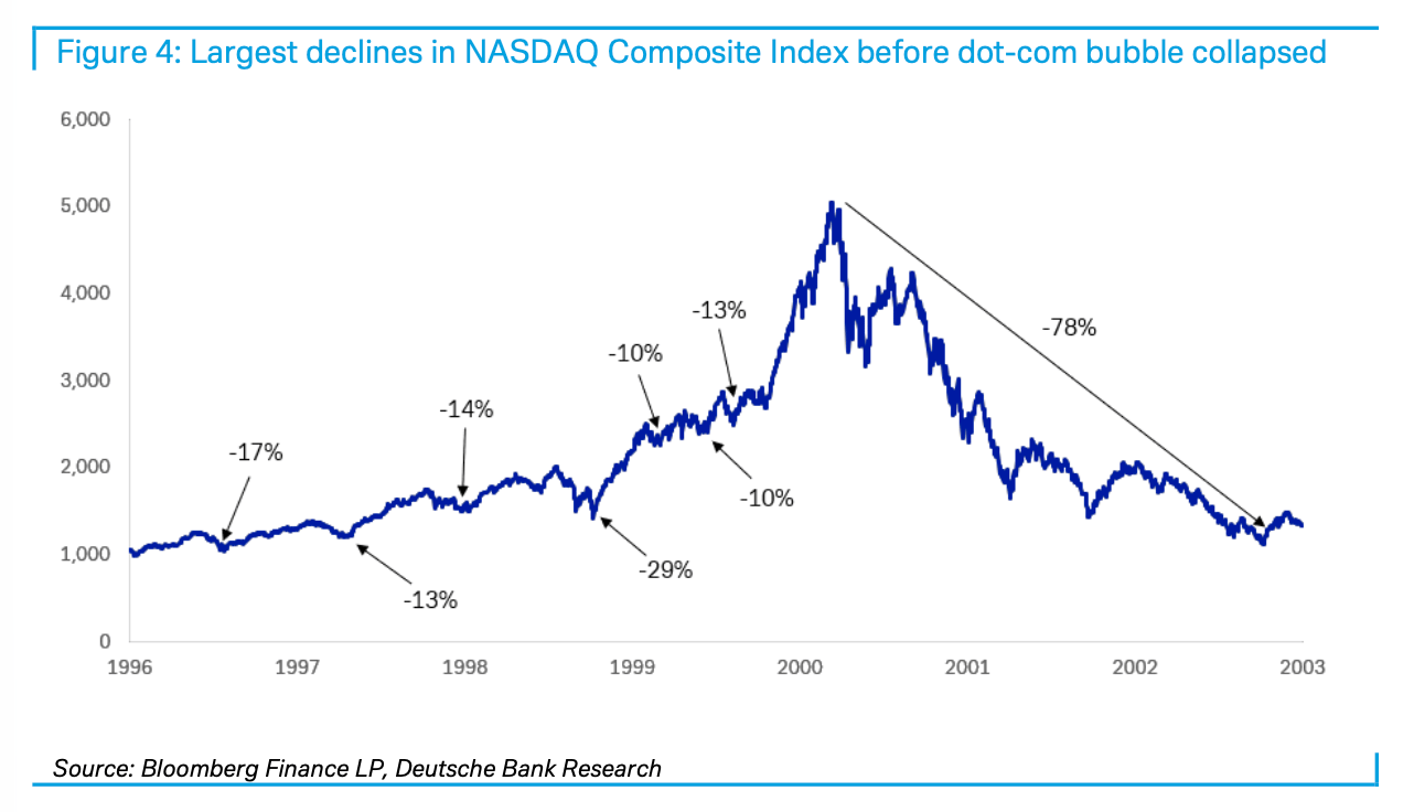 Excess in one direction leads to the opposite Bubbles create busts. For eg: The dot-com bubble drove tech sky high… then crashed the Nasdaq by ~78%.