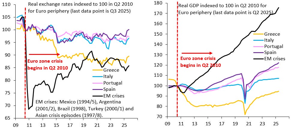 So read Brooks with two lenses at once: technical and incentive. Technically, the euro area needs better fiscal sharing, investment, and energy policy, not a geopolitical divorce that would shatter the single market. Incentive-wise, proposals that would create massive FX moves are hardly neutral; they create huge trading, hedging and advisory opportunities for global banks.